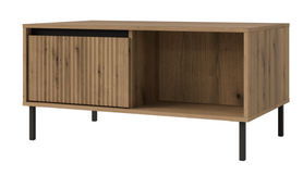 Stolik kawowy Osaka z dwiema szufladami i ryflowanymi frontami 100 cm dąb evoke na czarnych nogach