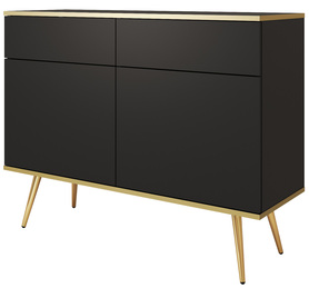 Komoda dwudrzwiowa Glinte z szufladami 107 cm czarna ze złotymi nogami