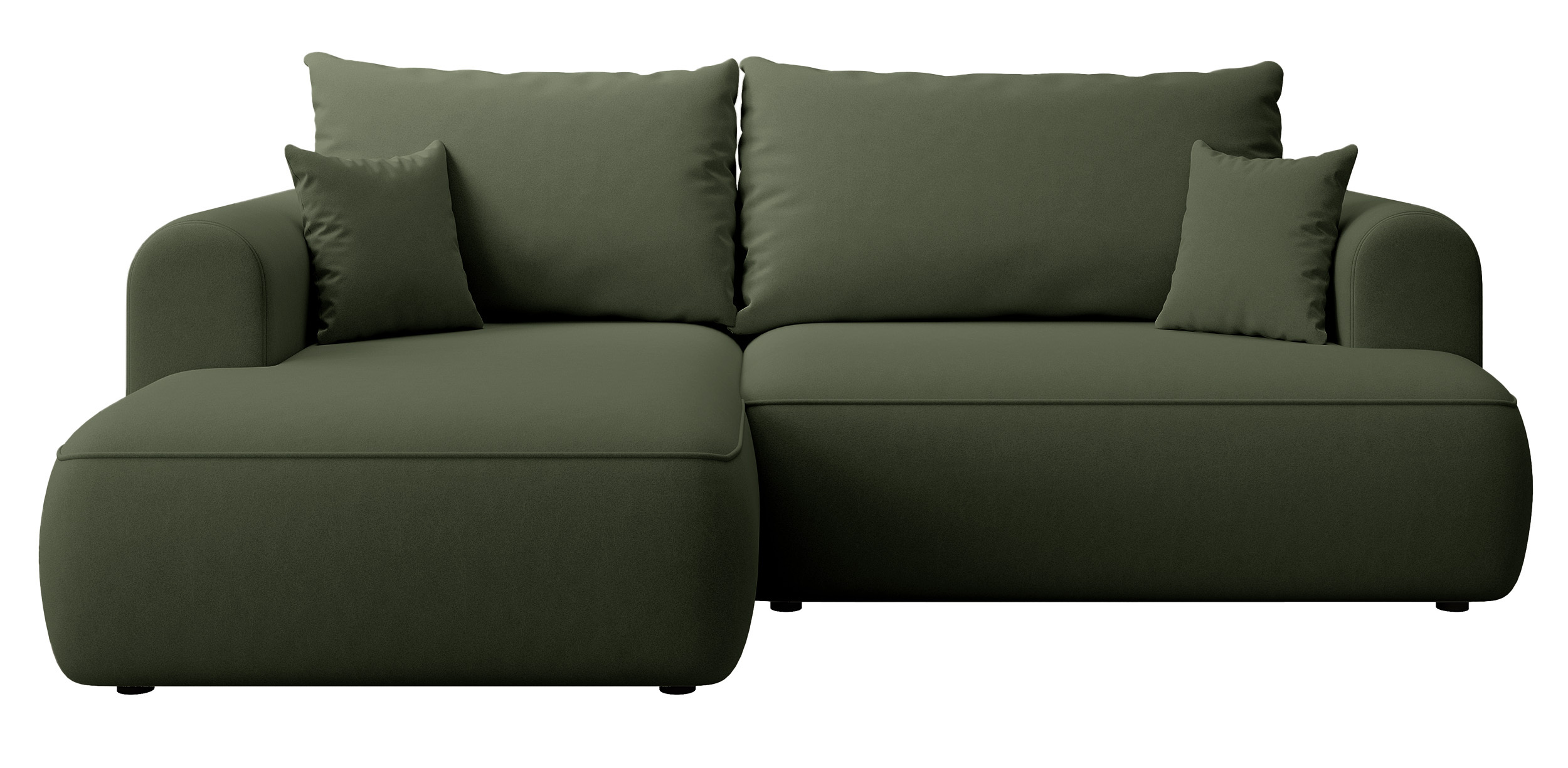 Narożnik z funkcją spania Ovo mini L-kształtny lewostronny z pojemnikiem oliwkowy welur łatwoczyszczący